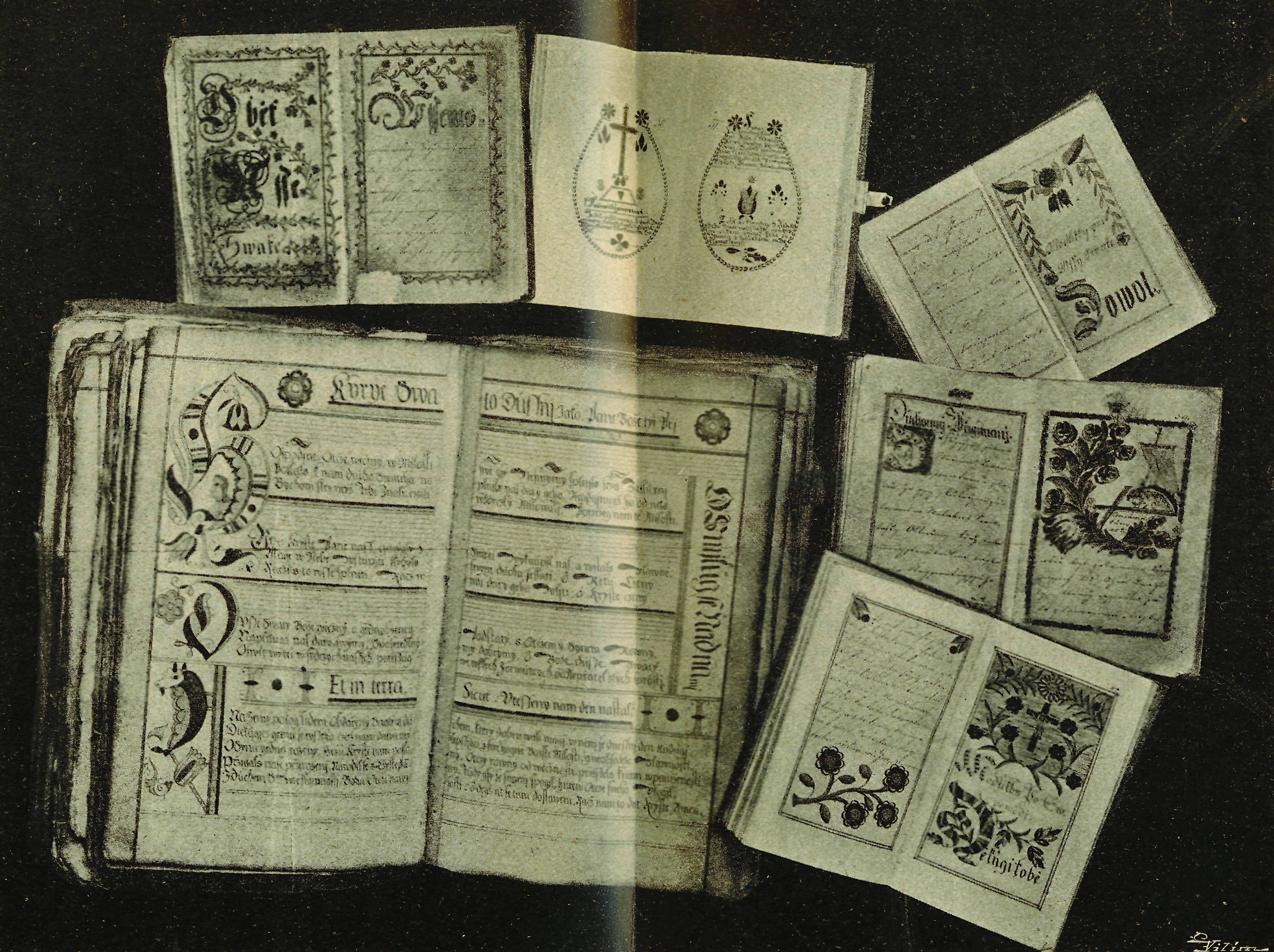 Lidové knihomalby na Národopisné výstavě českoslovanské.