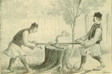 Tento obřad děje se takto: Oba starci drží jedno lipové suché prkénko ; bába druhým prkénkem tře dřevo o dře\o, až se zapálí, a to je „živý