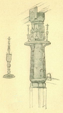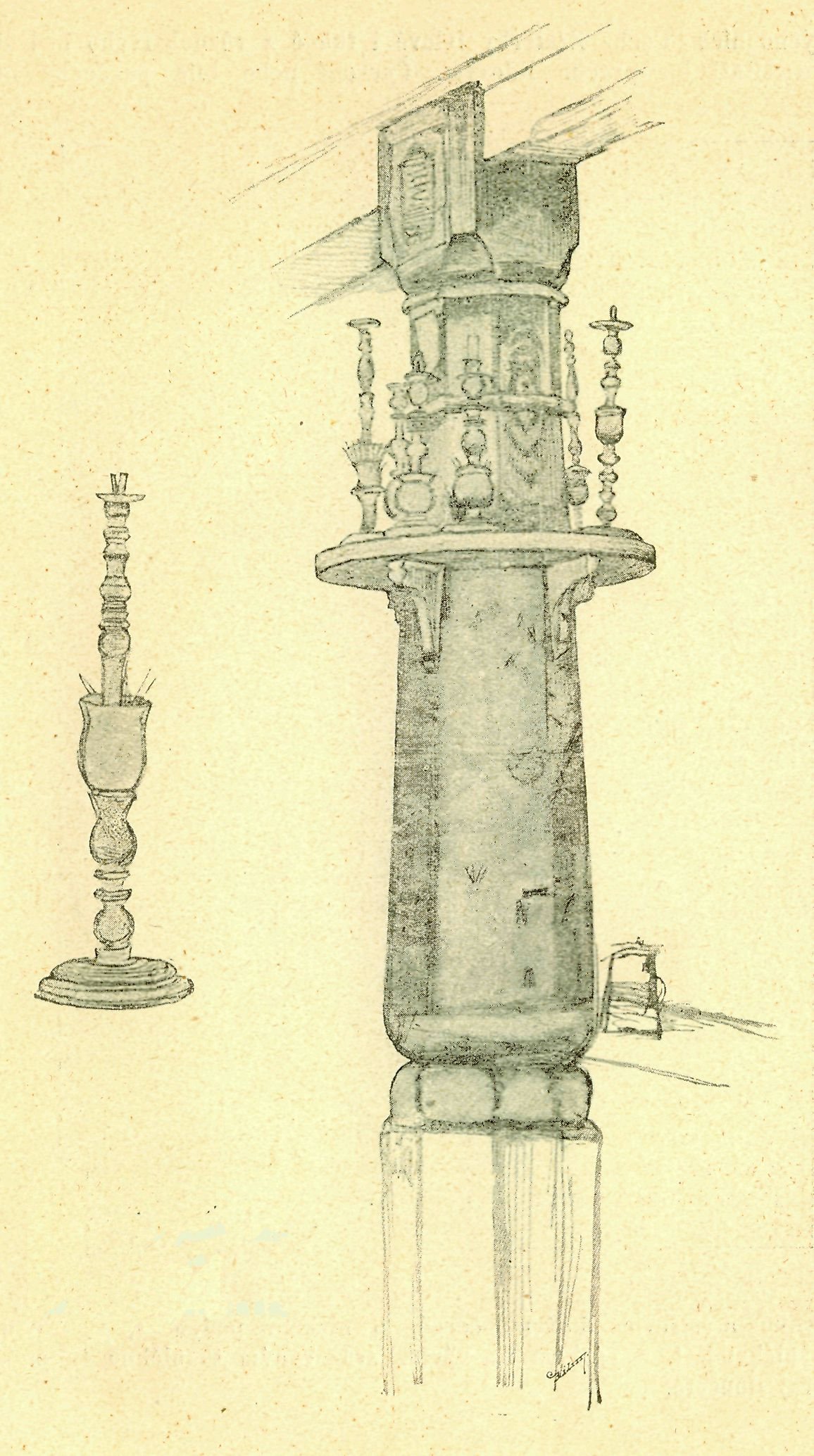 Sloup se zábradlíčkem na svícnísy s fidibusy v české hospodě venkovské