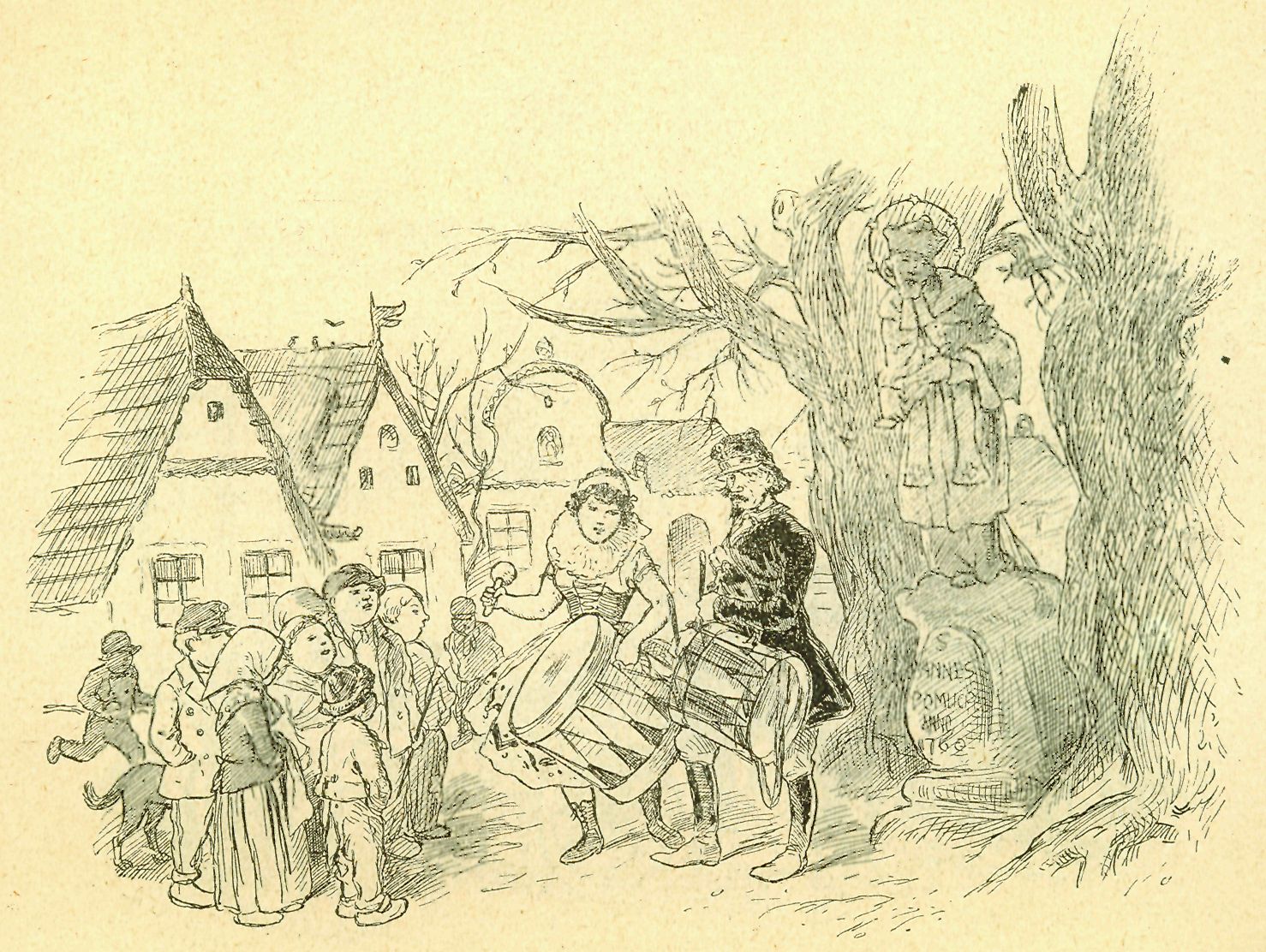M. Kopecký svolává na komedii. Kresba M. Alše.