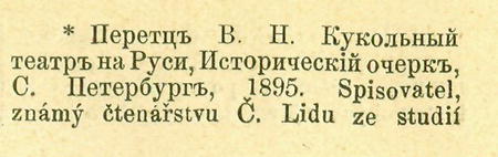 o písních národních (viz V. ročník str. 371), sestavil v úhledné knížce, provázené řadou názorných vyobrazení, dějinyloutkového divadla na Rusi. Nejdříve seznamuje s ději-