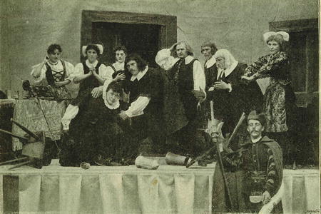 Výjev ze staročeské divadelní hry Sedlský masopust, provozované ve Staré Praze na NVČ.
