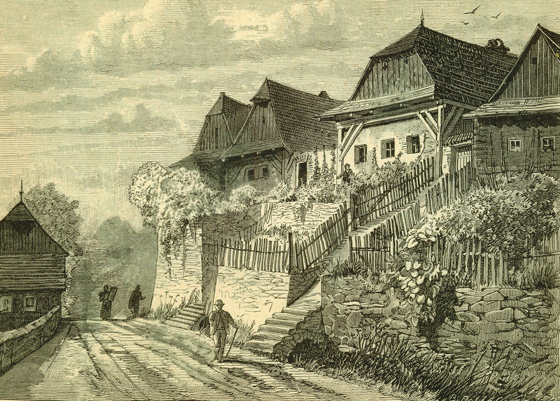 Baráky „na Betléme“ v Litomyšli. Kreslil J. Kou1a.