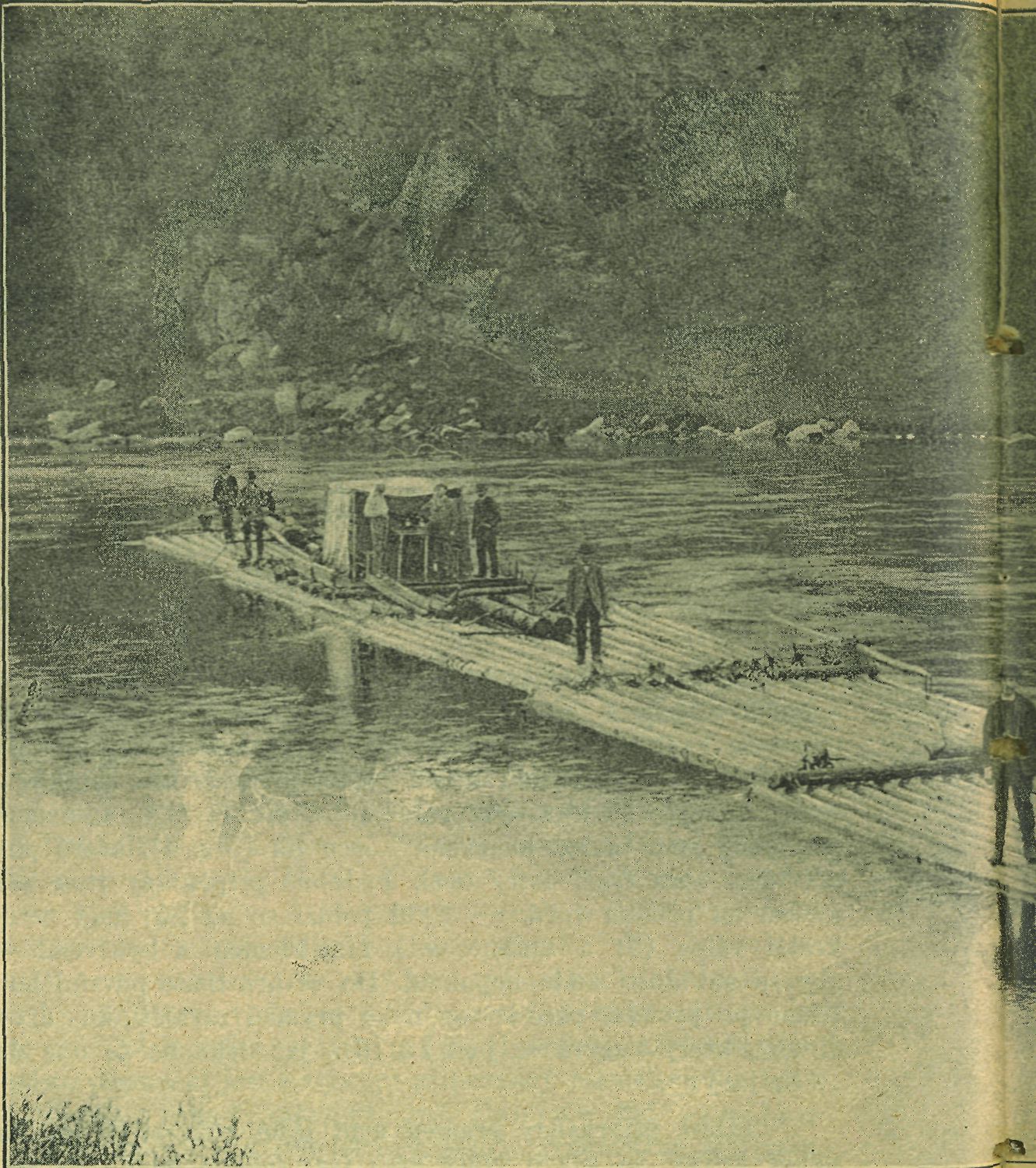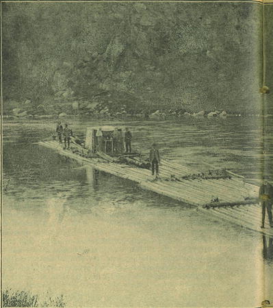 Na takto připravený pramen, je-li voda pro plavbu příhodná, stoupnou 3 plavci, z nichž nejzkušenější, jenž zove se „vrátný", zaujme místo