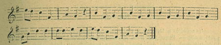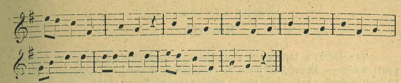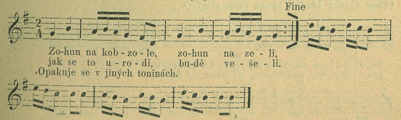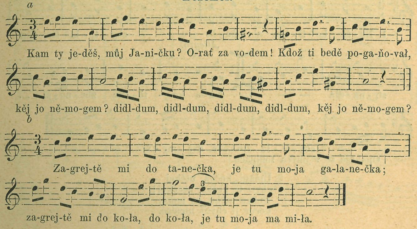 „Tane c" se může doprovádět hudbou čtverého způsobu, jak částkou notovou naznačeno jest. Na Orlovsku jmenují tentýž tanec „telená" a hraje se při něm následujícím způsobem dvojím: