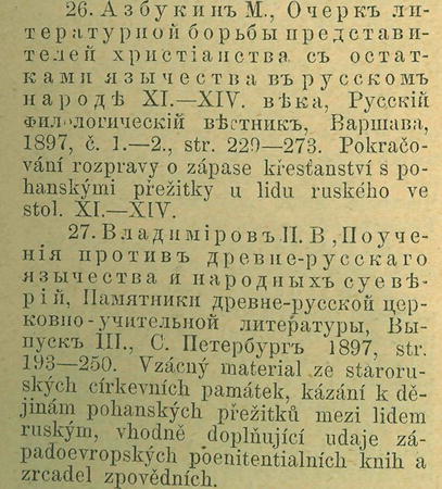 2ö. černý A., Mythiske byíošce lužisltich Serbow, Časopis Mačicy Serbskeje 1897, Budyšin, Lětnik L., zešiwk 1. (red. dr E. M.uka). Horlivý pěstitel vzájemnosti česko-lužické pokračuje v oznámené již studii o bájesloví luzických Srbů, všímaje si v další stati (IX Kuzlařniča, khodota, kuzlař) také bájeslovných zjevů českých, při čemž zejména těží z článků a z materialův, uveiuěných v českém Lidu.