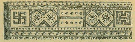 Na české holubince z okolí Hlinská v Národopisném museu v Praze uložené (viz obr. čís. 4.) vyšita jest ozdoba na způsob sekáčového kříže (svaz a souvaz), kterýžto motiv u nás velmi vzácným jest; naproti tomu však na východě, u Jihoslovanů a Rusů hojně ve vyšívání národním se vyskytuje sekáčovy kříž (Hackenkreuz), znamená u Slovanů blesk a oštěp Perunův, boha slunce, a nalézá se společně s mnohým symbolickým znaménkem na předhistorických předmětech typu hallstattského.
