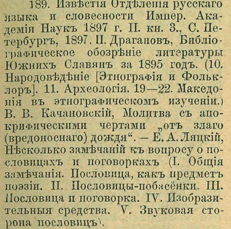 190. G. J. Zielinski, Zwyczaje myśliwskie, Wisla, Warszawa, 1897, seś. 2., str. 424. Autor hodlá sepsati monografii o mysliveckých obyčejích. Vyzývá, aby mu byly posílány příspěvky, výpisy, poučení o tištěných i rukopisných zprávách. Srv. č. 6.