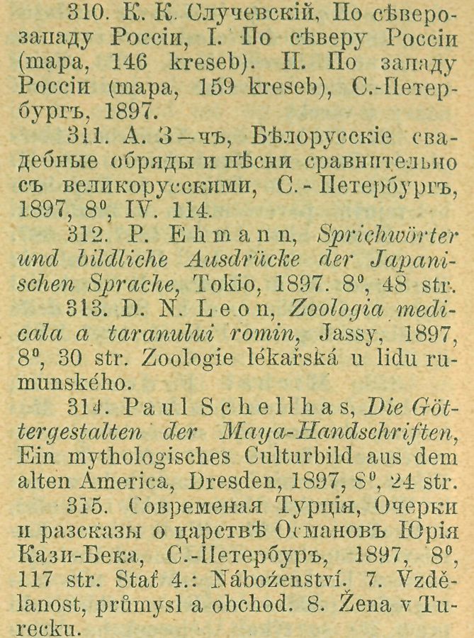 316. Ludwik Kr z y wieki, Kurs systematyczny antropologji. I. Rasy fizyczne, Warsawa, 1897. Část IV. je věnována také slovanským typům.