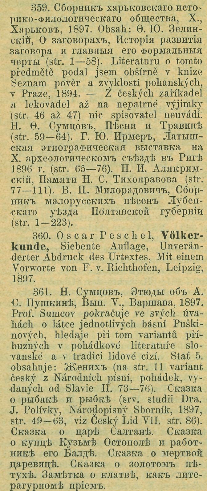 358. M. M u r k o, Prvi usporedivaii sansJcrita sa slovenskim jegicima (Otisk /e 132. knihy Radu jugoslav. akad.), u Zagrebu, 1897. Spisovatel dotýká se též výkladu u českých spisovatelů o příbuznosti Slovanstva se starými Indy.