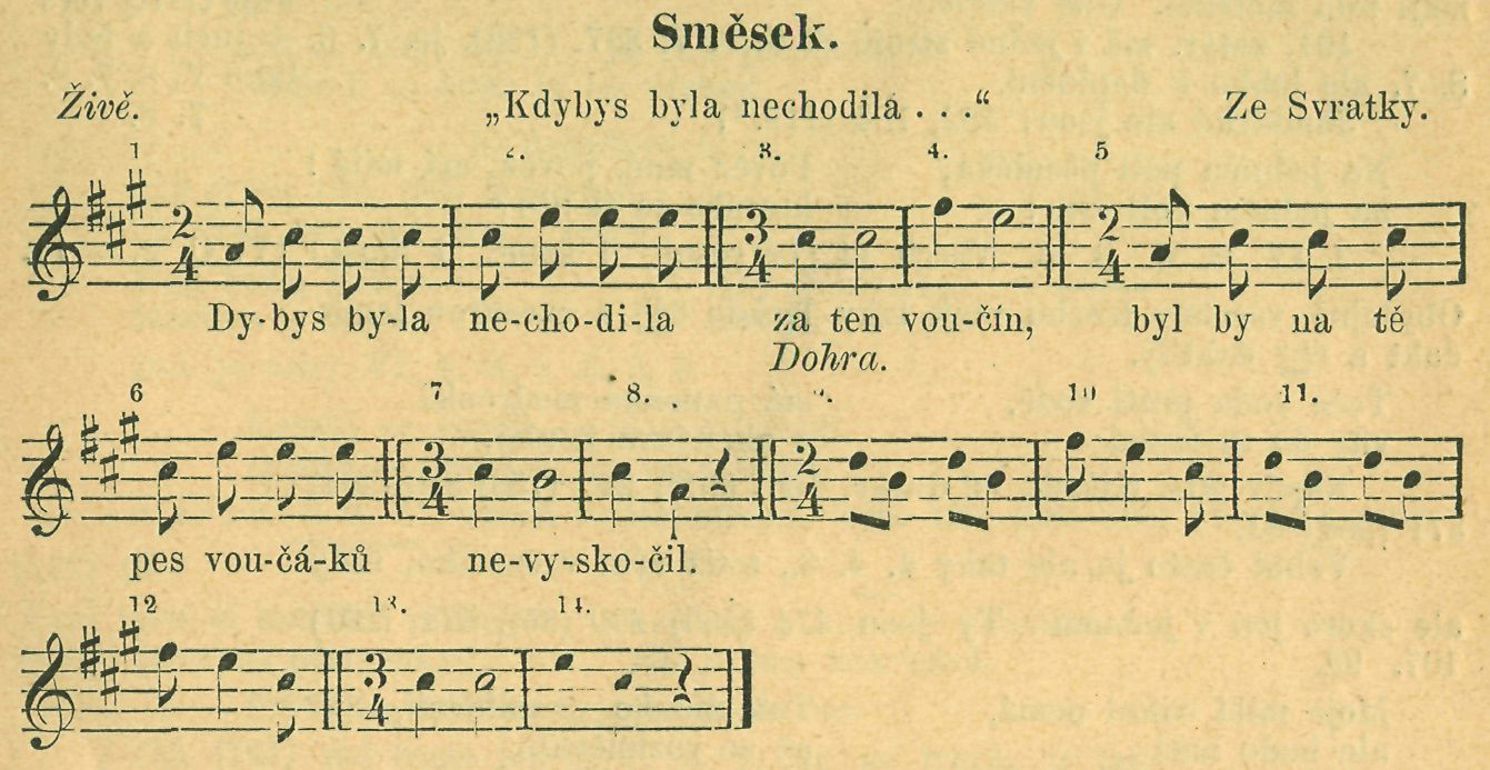 1. IV. 8. 7. 8. 7. troch. 21 (1 ep.) 12 vesel., 3 smut., 6 lhost. IV. C. 1. = 21. Nápěvy: 115. 150. 119 po dvou 191 taky.