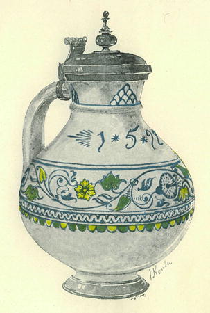 Džbánek s letopočtem 1599 v Umělecko-průmyslovém museu v Berlíně.