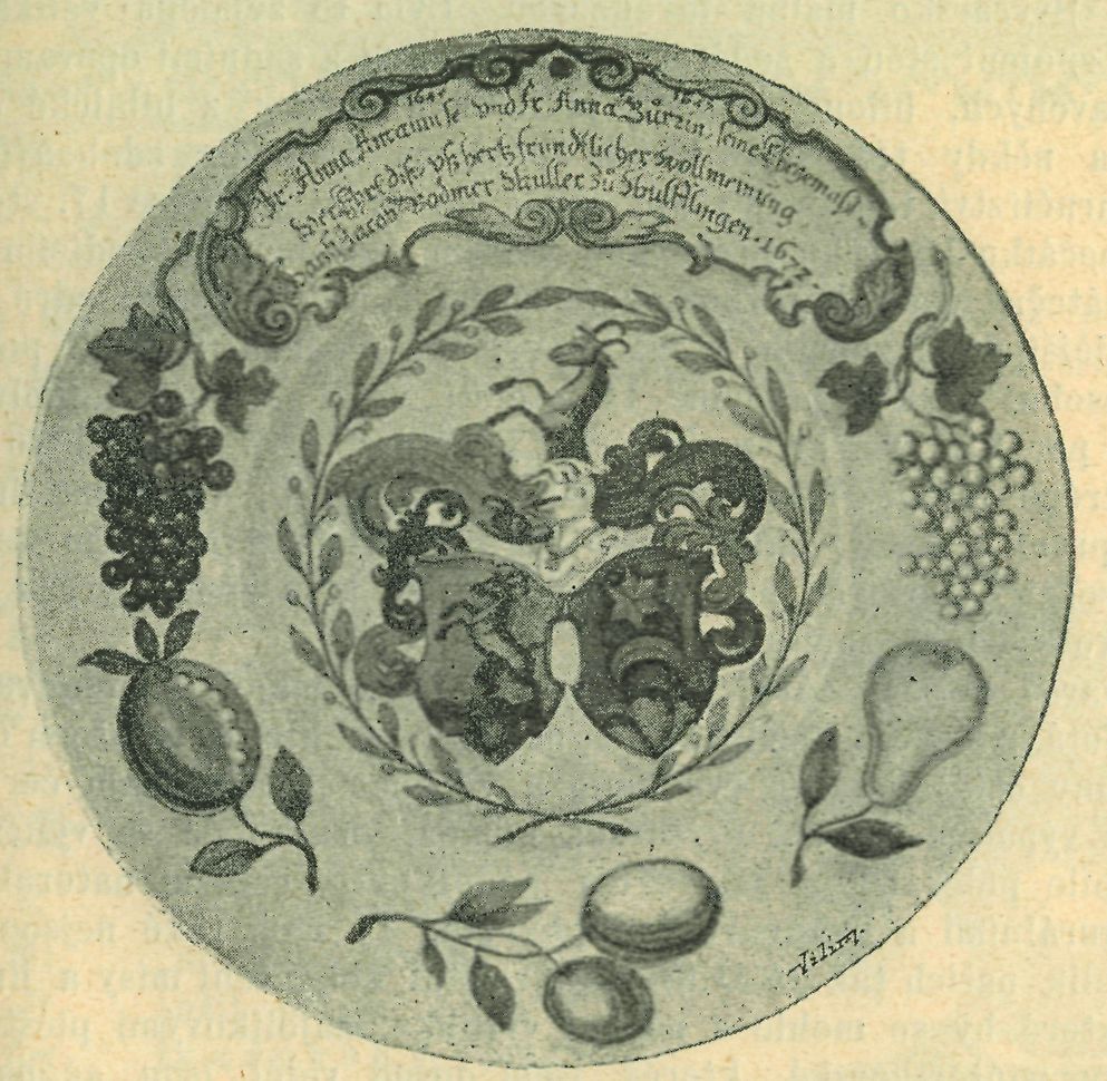 Když jsem takto pověděl, proč pokládám džbánek z musea berlínského za majoliku československou, dovolím si poznamenati také stručně, ale podstatně, co se ví o fayencích z Winterthuru. Jest to tím důleži-tější, že by se mohlo namítati, že majoliky naše byly sem od novokřtěnců