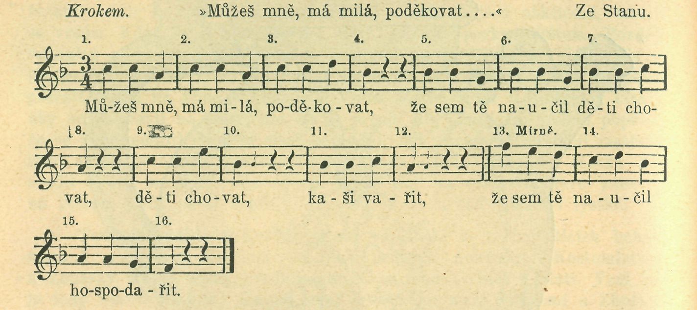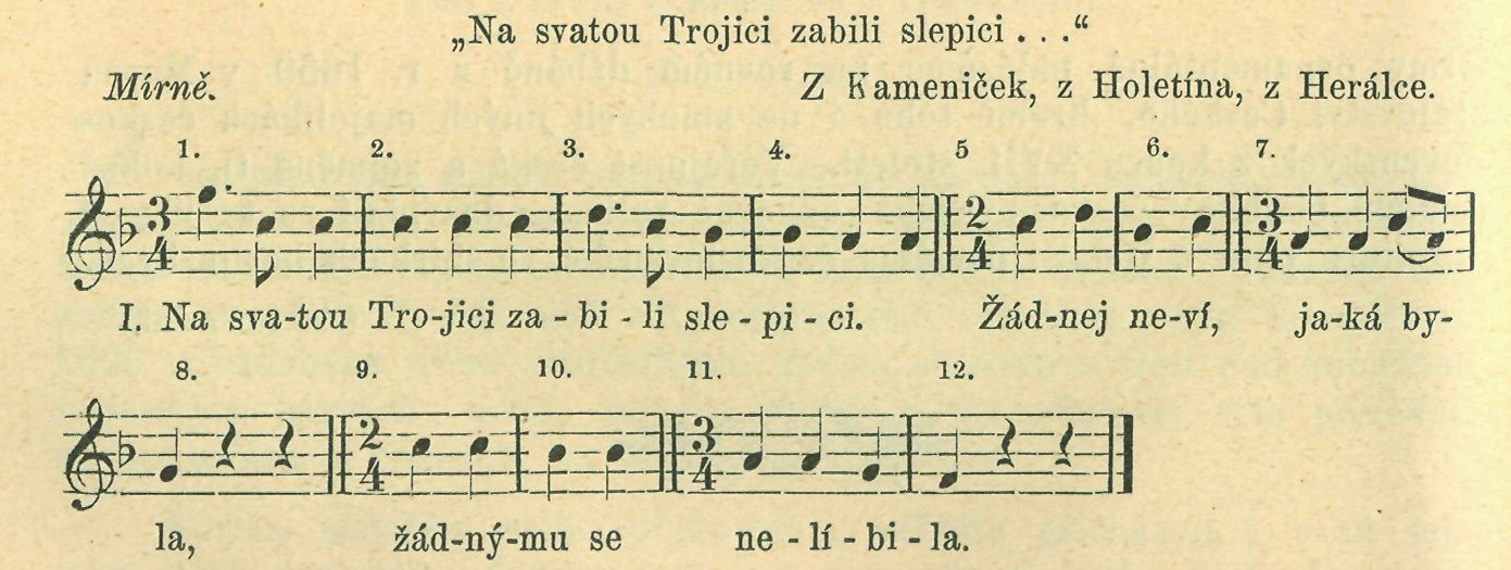V Blatnú zpívali tutéž píseň, jako ve Stanu, pouze v posledním verši se odchylují: »eště tě naučím hospodařit.«