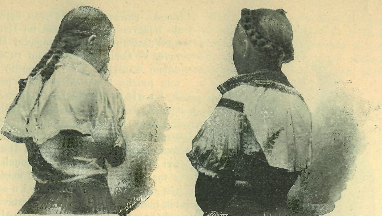 Obr. 3. Děvče horňácké v rubáči, slavnostně zapletené. (Fotogr. řed. Jos. Klvaňa)