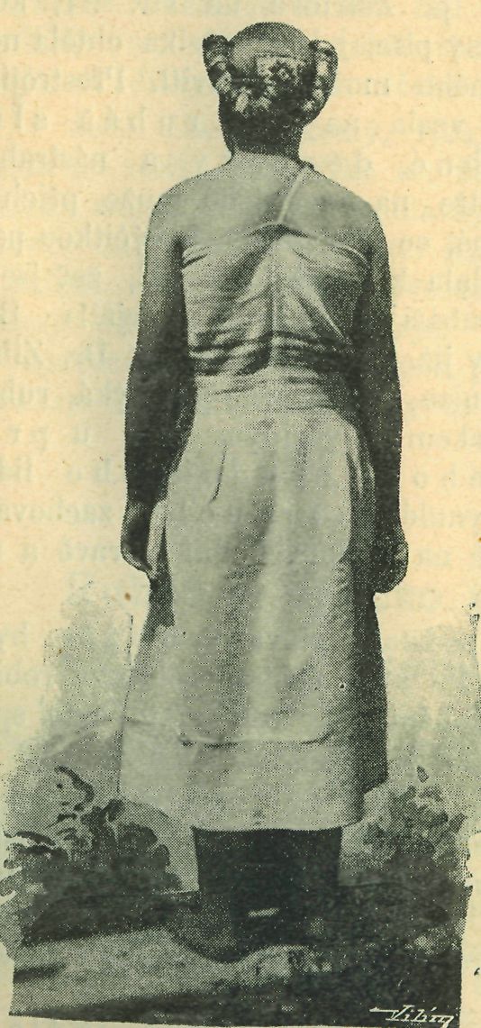 slovenských, jest bezpečno. Nasvědčuje tomu částečně i to, že v hornatých krajích děti v létě ehodí pouze v ru-bášku, že tu někdy i větší děvče ne-štítí se, ovšem před známými, zcela bez rozpaků procházeti se v tomto-rouše, kteréž, jak na obrázcích připojených vidíme, ostatně není hlouběji »vystřiženo«, než plesové šaty našich krasavic. Této obvyklosti porůzně nositi pouhý rubáš v létě ostatně vděčíme naše obrázky zajímavé i důležité. Ale ještě jedno úsloví nasvědčuje, že rubáš nosil se, alespoň v den dělní, bez ostatního roucha (nejvýš s rukávci) ještě poměrně v pozdních dobách. Říká se skorém na celé východní Moravě spodnímu pruhu rubáče, z pod šorců nebo sukní na mnoha místech slováckých 10—15 cm. vyčuhujícímu »sobot a«. I tam, kde to již není ve zvyku, pokřikují na děvče nebo ženu, jíž rubá-ček svrchní roueho dole přesahuje, ž e má delší sobotu než neděli, t. j., že má rubáč, který se nosil na den dělní, tedy na sobotu, delší než. šoree anebo sukně, které braly se jen. na neděli a svátek!