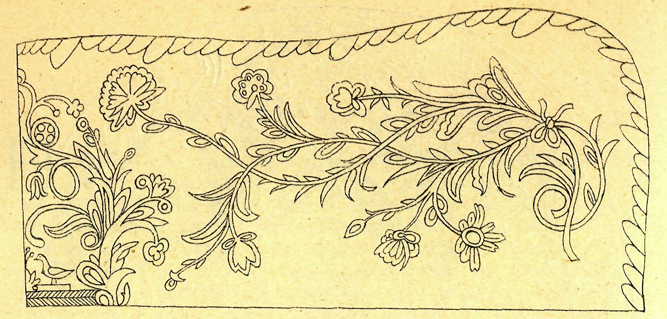 Z toho vidno, že ve Lhotě Bradlecké byla to jediná Kateřina Jenčková, která holubinky vyšívala, a že i v městečku Železnici pouze „u Haratickejch" a později taky „u Endrysky" umění to se provozovalo. Vždyť ani nyní nešijí si hospodyně všechno prádlo a šaty pro domácnost, a přece jim k tomu nová škola základ podává.