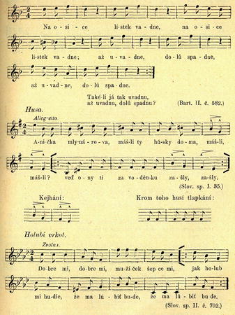 Žluva prý se jmenuje onen pták, jenž truchlivě si prozpěvuje skoro celou chromatickou stupnici shora dolů (ovšem nikoli přesně „podle not"). Píseň to napodobuje v 5. — 7. ťuku.