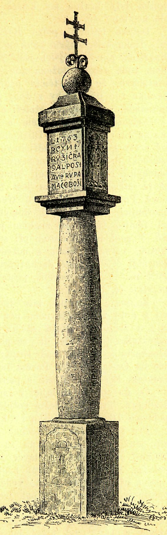 Čís. 6. Boží muka u Telče na silnici jihlavské. Letopočty dva: 1730 a 1760, bez nápisu.