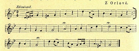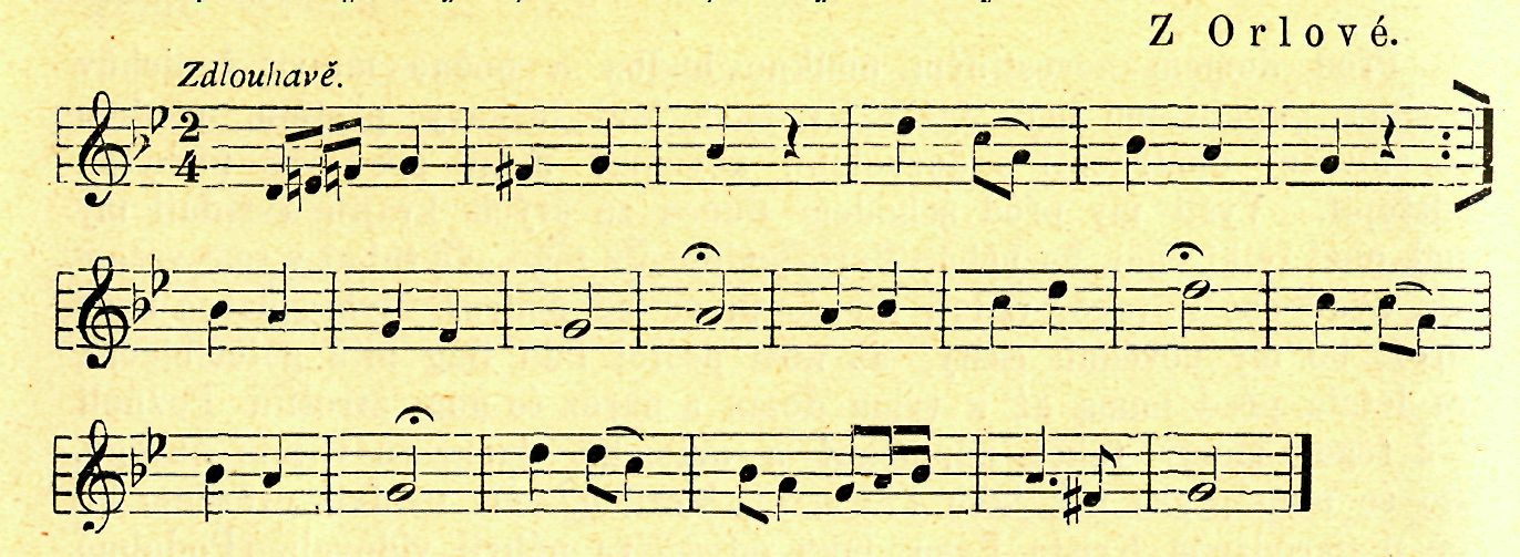 ľtani *) něviasty (žádost o vydaní nevěsty). Ženichův starosta: „Milý přotělu! Ead bych s vami přemuvit cośi sluv. čitomy v prvši knize Mojžišove, že stvořil Bug sviat a všicko na nim. Na ostatkem stvořií člověka a doł mu imě Adam. I vid'oł Bug, že nějest dobře byť člověku samotnemu a proto rekł: učiňme mu pomocnicem, kěra by mu była podobna. Bug dopustil na Adama tugi spánek a vyňal mu z boku žebro, z něhož zbudoyoł člověku něviastem. Když ju spatřil Adam, rekł: To je kosť z kośti mojej a ťaío z ťafa mojego. Dle tego opusti člověk oitca i matkem a přiíuči śe žoně. aby byli dva jednego ťala Pravě diś sem přiviod míoděňca, kěry chce změnit samotny život a do stavu man-želskego vstúpiť s děvečkum N. N v tym domě prebývajuncum. Přichodi mi na paměť udaíosť, jak śe přiblížila ? Abrahamovi smrť, a povolach ? sobě věrnego sługem Eleazara rekł: .Służebniku muj, vlož rukem pod žebra moje a zapřisongej śe mi, že nevezmeš za žonem synu Isakovi žodne z dcer kananejských, ale že pujděš ? příbuznosti moji a z tamto vezmeš jemu děvečkem za žonem.' — Řekl Eleazar: ,Jak učiniť, ježeli by něchťala isť ?' ,Dufom v Boga nějvyššigo, že pujdě děvečka rozem.' Ně-meskoł Eleazar, ośedłol 10 veMudu a nabrach potřebné potrovy, spěchol do kraju, kandy chodify děvečki vožiť vodem. Padnył na tym mějscu na tvař a vzdychnul ku Gospodinu: ,Pane, dejže mi, abych poznol z tych, co přidum na vodem, právu, zpusobym, jak ju poprošem s vodem.'