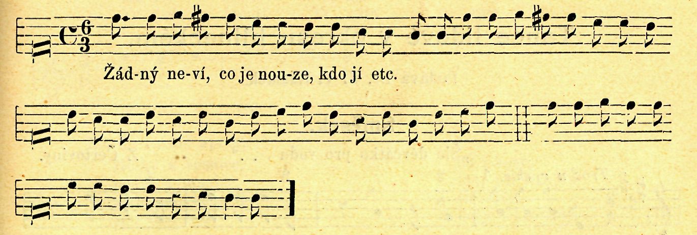V pestré směsici přerůzných zápisku a přepisů, jež P. Evermond Jiří ?? š etický, kapitulár Strahovský (f 1700), sobě s nevšední pilností činil do objemných foliantův svých, jimž dal případný název „Quodlibet", a jež ve Strahovské knihovně se chovají, nalézáme ve svazku II. na listu 23. a 24. zajímavou píseň, v níž ozývá se stesk selského lidu na útrapy, jež snášeti musí, a prosbu za smilování. V čelo písně položen nápěv a počátek jiné písně, totiž „Žádný neví, co jest nouze, kdo jí etc.", podle níž se zpívala.