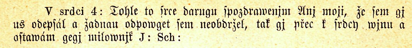 Zmiňuji se tu jen o třech listech ozdobných, ale jisto jest, že nebyly ojedinělé. Venkovanky, spatřivše je na výstavce, vzpomínaly si, že bud! samy podobné mívaly, nebo že je vídaly u známých. Vypravovaly, že milý své vyvolené, ženich své nevěstě posílával takové dopisy, jež často zdobil i psal sám, časem malbou a propichováním dával ozdobovati a jenom slova vepsal, někdy i psaní svěřoval jinému. Zvláště kantoři, kteří psali modlící knihy s malováním, zaměstnávali se také takovým písařstvím, ba tu a tam posloužil druhu a příteli svému některý vesničan zvláště obratný. Na konec prý hoši kupovali v městě o výročních trzích malá srdéčka z papíru mnohonásobně složeného vytvořená a propichováním ozdobená a svým milým dávali je darem.