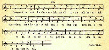 Nápěv: Erben 272. (Když jsem já k vám chodívával přes ten háječek.)