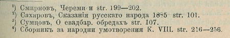 Proslulý cestovatel za minulého věku v gubernii permské Lepechin viděl, že někteří vesničané k selskému shromáždění vodili na den sv. Eliáše vola, jiní tele a společně z něho jedli.2) V tulské gubernii v starých dobách pekli chléb z nového žita, nosili jej k požehnání do kostela a rozdávali pak mezi chudinu v celé vsi. V archangelské gubernii na den sv. Eliáše zabíjejí se ovce.3) Souhlas mezi popsanými obřady tří národů zajisté není nahodilý a vysvětluje se z b.ývalých blízkých styků.4)