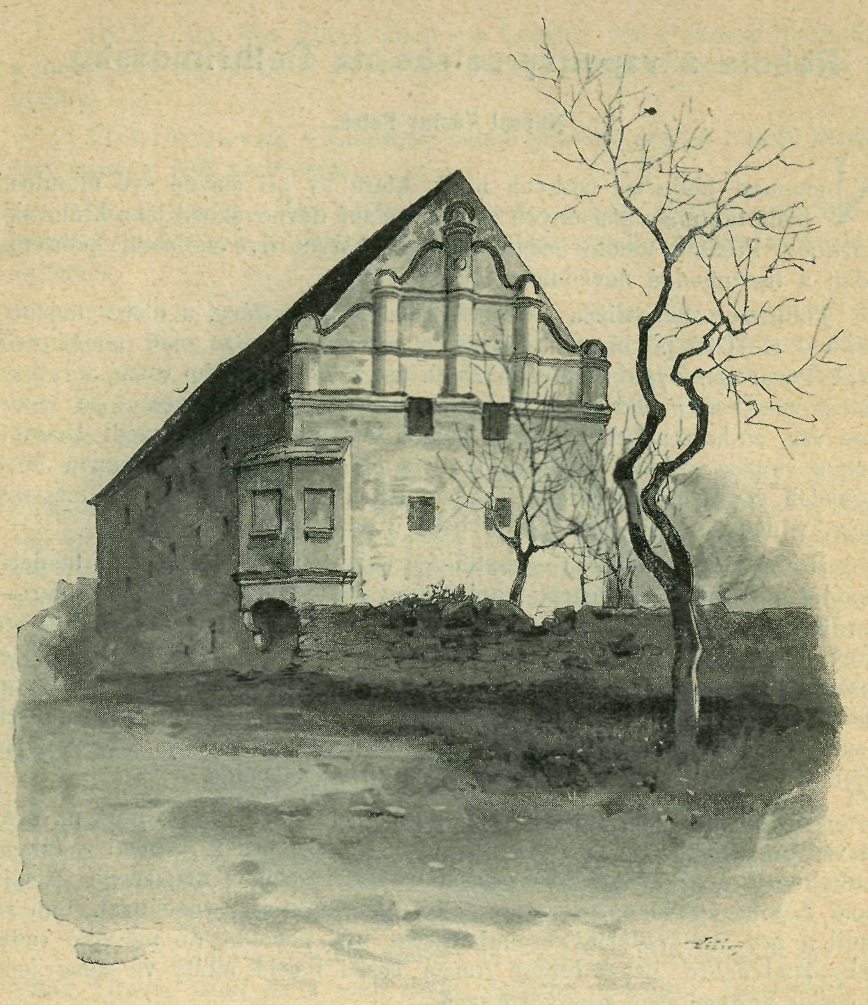 Tvrz v Kadově. (Podle obrazu dp. faráře J. Hille.)