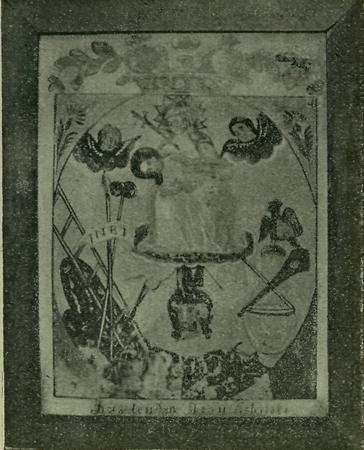 Č. 5. Malovaný obraz na skle z Novo Strašecka,. Fotogr. K Procházka. (Str. 490.)