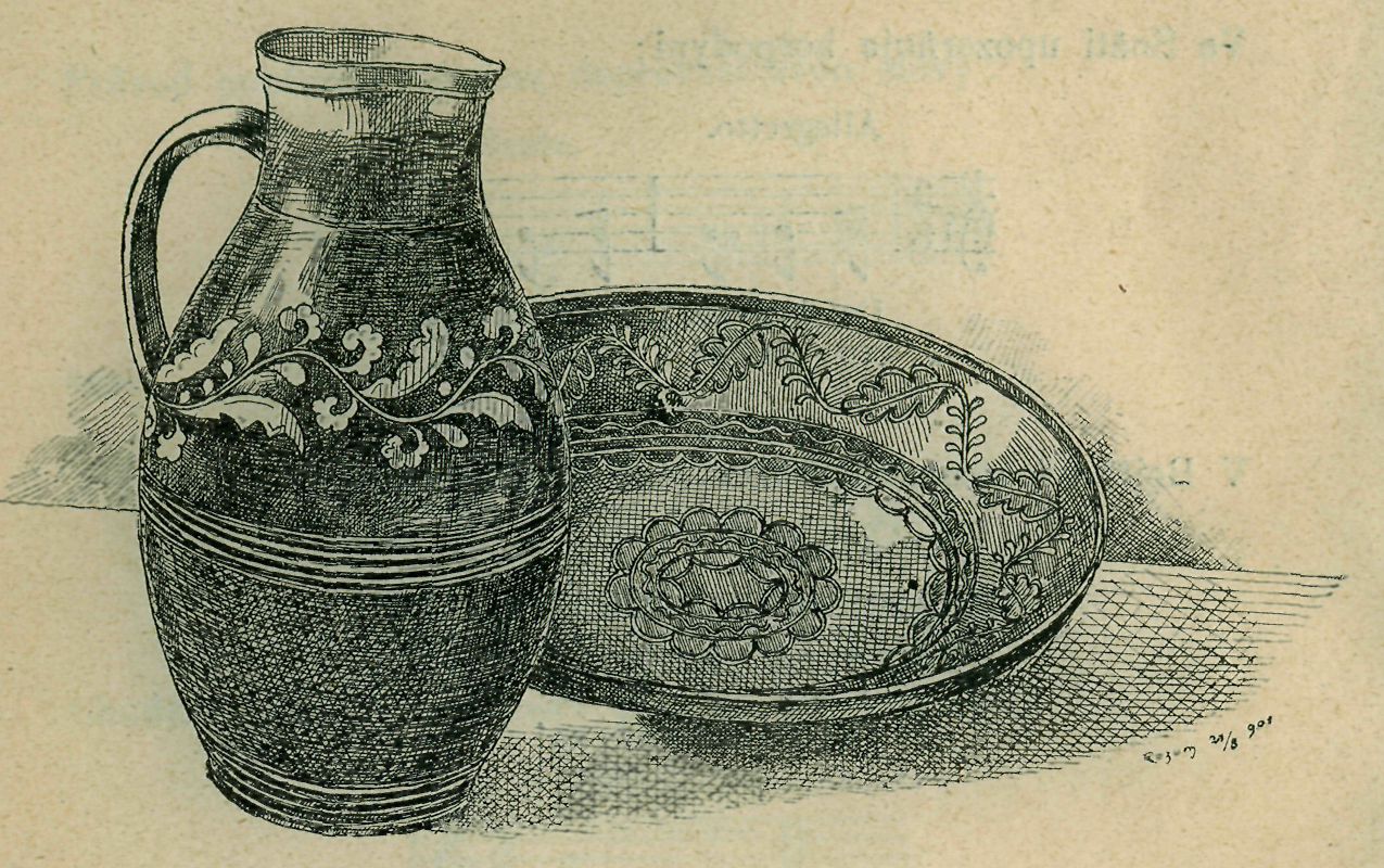 Č. 1. Dbánek z Bechyně. Mísa ze Soběslave. Kreslil prof. Karel Rozum.
