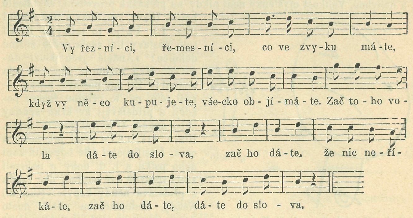 I touto hrou baví se výhradně jen dívky. Postaví se do řady, vezmou se za ruce. Jedna postaví se proti nim, asi 20 kroků jsouc vzdálena. Pak postupují proti sobě a střídavě zpívají; počíná ta, která jest samotná.