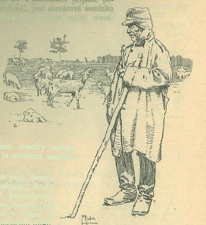 V Poděbradech uspořádal výstavu uměleckých prací svých se znamenitým úspěchem a za hojné účastí známý umělec L. Kuba. Pro studium národopisné poskytovala zdařilá výstava mnoho zajímavého materiálu. Na str. 21. vyobrazen »Ovčák z Polabce<, rázovitá kresba L. Kuby, určená pro dílo >Poděbradsko«, o němž jsme již zprávu podali a další referát uveřejníme, jak dále pokročí. Panu J. Hellichovi děkujeme za. laskavé svolení k otisku tohoto obrázku.