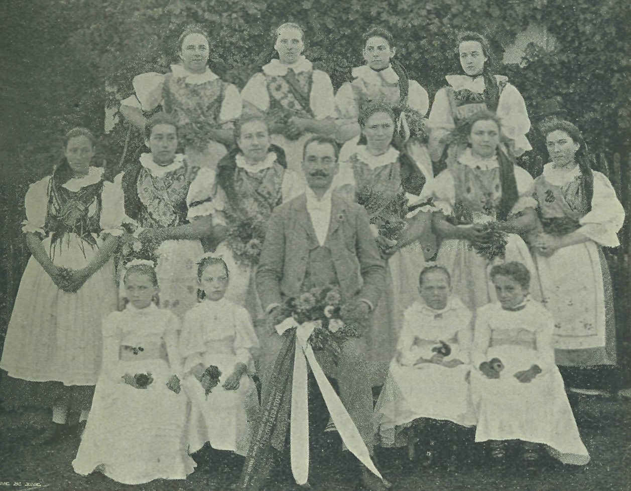 Dívky v Blatském kroji na Kubátově slavnosti.