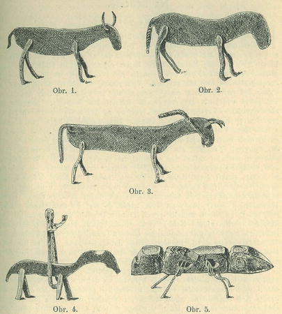 které menší detailky. Bizarně působí na pozorovatele tělíčko, 8"5 cm. dlouhé, 6 mm. tlusté a 1'1 cm. vysoké, článkované, spočívající na 4 drátěných 15 mm. vysokých nožkách. I oči jsou naznačeny vyrýpnutými prohlubinkami. Snad jest to kobylka, kterou rolníci darovali na oltář kostelíka v čas strašné návštěvy kobylek. Brouka věnoval Museu rovněž p. t. p. Frant. X. Borovský. Pokud se pamatuji, jest několik kravek obětních i v Domažlickém museu vystaveno.