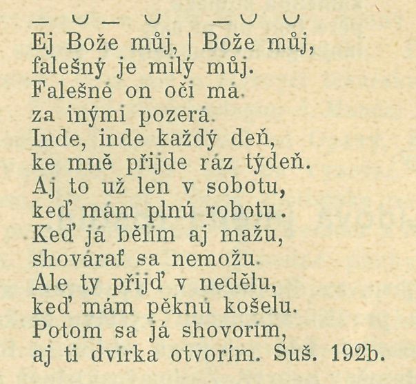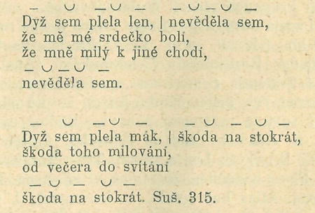 Následující píseň zakončena jest dle nápěvu částečně zdvihem, který také dobře se hodí, ač i daktyl jest možný.