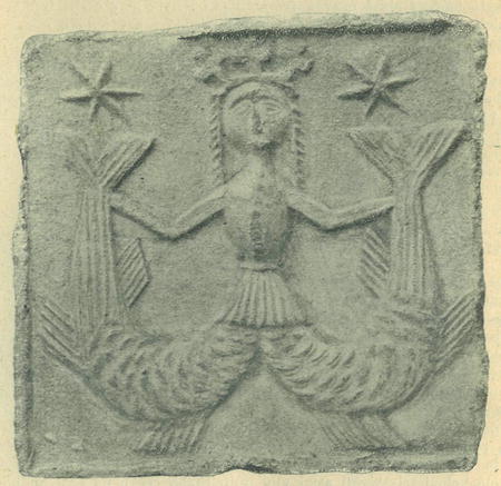 Meluzína na kachlíku v Chrudimském museu.