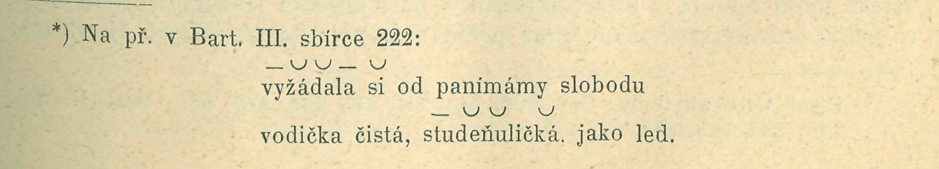 Podobně jako při stopách trochejskýeh, pozorujeme i při daktylpch. že v nich na prvním místě slojí buď jednoslabičná slova neb počínají slova víceslabičná o dvou až o pěti slabikách. Na slova člyřslabičná a pětislabičná sice není v písních uvedených dokladů, ale v jiných písních se naleznou.*) Na ostatních dvou místech daktylů mohou na obou státi