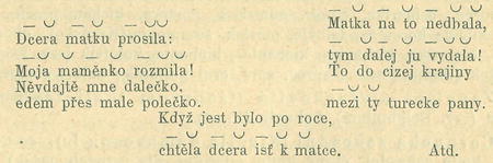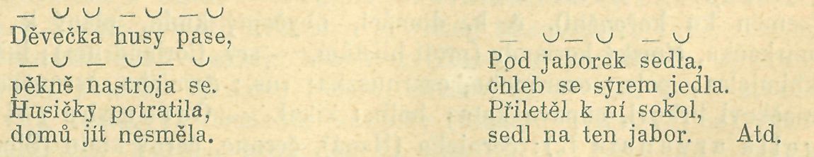 Z toho jest zřejmo, že v případě, když stopu daktylskou zastupuje v jiných verších stopa trochejská, stopa tato při zpěvu musí se rozvésti na tři doby. Případy takovéto jsou však velmi vzácné; zpravidla pěvci moravští počítají přesně stopy i slabiky.