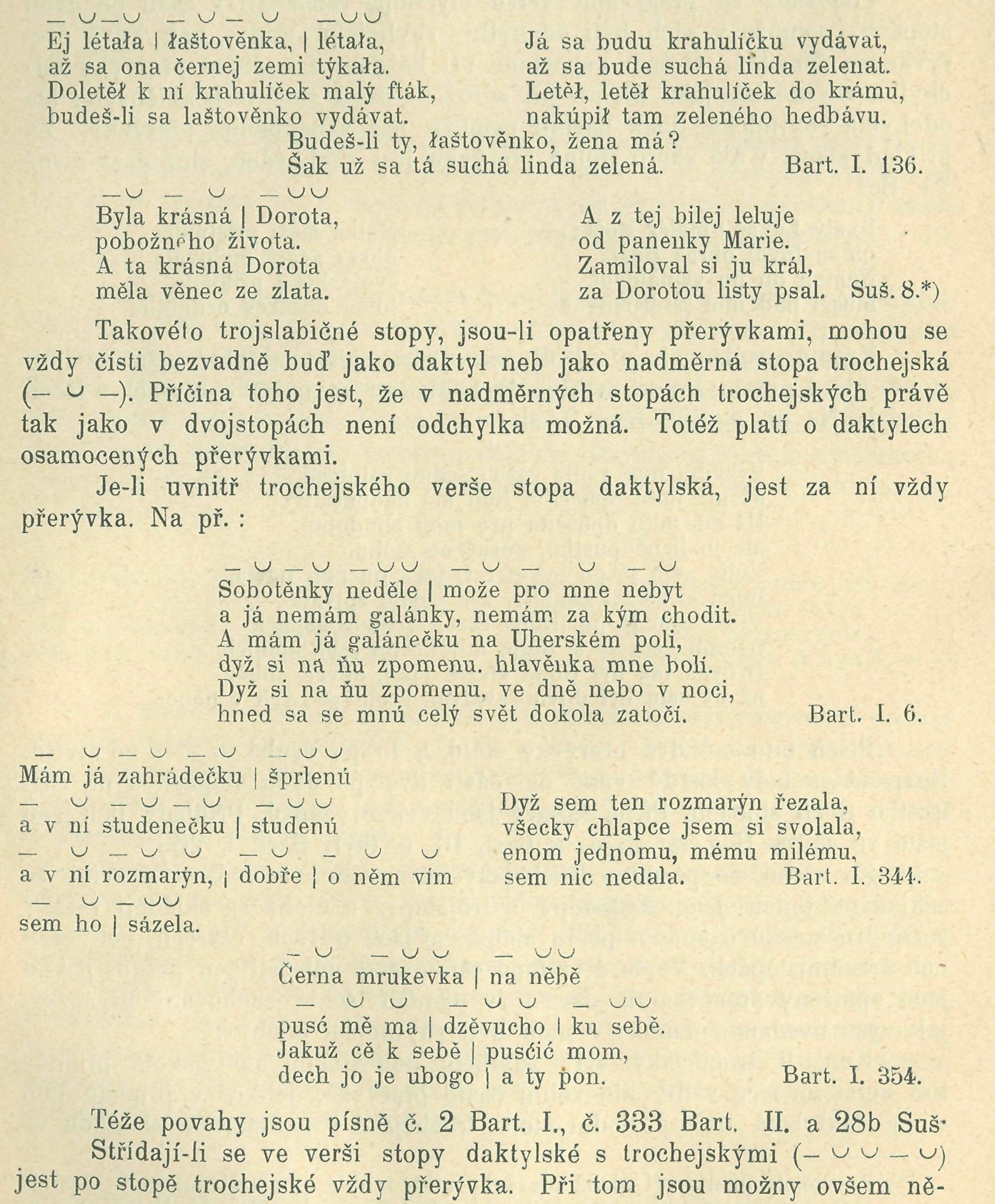 *) Písně toho druhu: Suš. 8, 11, 20, 26, 41a, c 76, 102, 622, 623b. Bari I. 136, 326, 351, 369, 373, 376. Bart. II. 7, 8, 42a, 55, 67, 301 a j. Bart.
