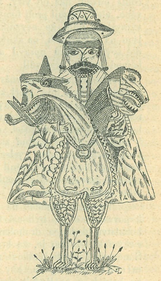Vyobrazení tohoto ptáka asi nijak nesouvisí s podivnou kresbou, na kterou upozornil nás Václav Tille ve výtisku »Zřízení zemská«, vyd. v Starém Městě Pražském r. 1534 (sign. univ. bibl. pražské, 54. C. 38) Na zadním přídeští totiž vlepeno podivné vyobrazení s nápisem: »Blb Pták od kněze a mistra Sobola, na ten čas kaplana u Matky Boží před Týnem na žádost přátel jeho vymalovaný a týmž přáteluom za dar poslaný anno 1542.« Jde tu patrně o škádlivou zábavu, kterou nyní po letech nesnadno bychom rozluštili, čeho asi se týkala v tehdejším družstvu přátel, jimž tato nelichotivá kresba s tendencí jistě netajenou byla »za dar« trochu neobvyklý věnována. Byla tu snad zobrazena určitě postava něčí (obličej). Dvě ošklivé hlavy šeredných stvůr, s vyceněnými zuby, s jakousi hrozivou, podrážděnou vzteklostí se šklebící, dodávají karikatuře zvláštního rázu. Rozumí se, že kresbě nepřičítáme důležitosti, jen ji uveřejňujeme na doklad, jak se staří uměli také škádliti. Pokud se týče slova a jeho významu, ztotožňuje Daniel Adam z Veleslavína ve svém slovníku Nomenclator quadrilinguis (sloupec 61) název Blb, jehož tu mistr »Sobol« užil, s celou řadou nehezkých příbuzných slov: Bloud, troup, telpl, nevybitý, špalek, peň, tupec, blivoň.