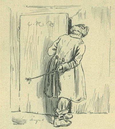 9. Velikonoční koledník s vrbovou dynovačkou číhá na ženské. Kreslil Ad. Kašpar.
