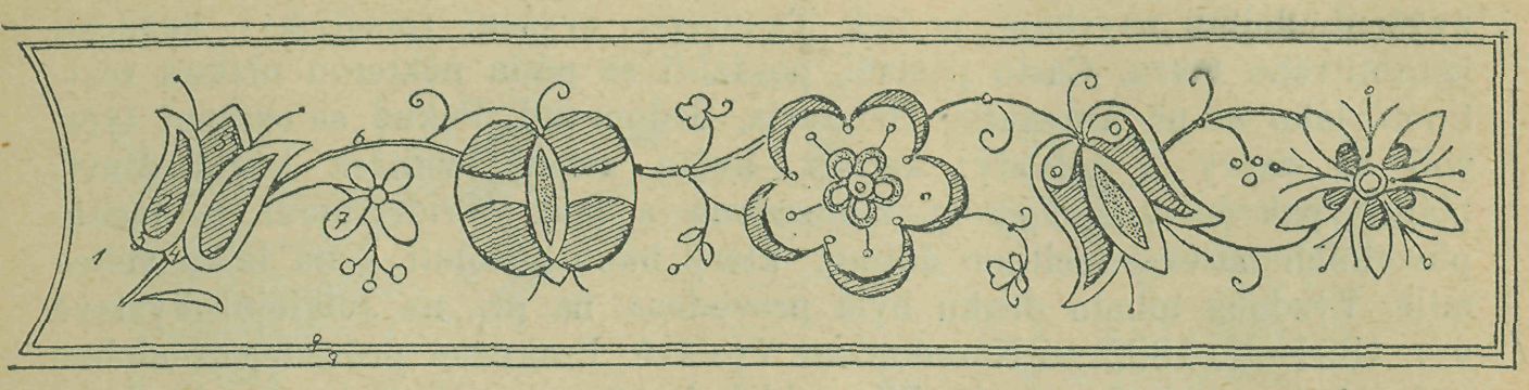 Český ornament, takto upravený, hodí se pro každou zahradu, přizpůsobenou pro jakékoli skupení květů, obklopených trávníkem. Nejlépe na ploché půdě. Místo dobře se zkypří, není-li zem dosti dobrá, vhodná, nahradí se prstí kompostní, povrch se pravidelně urovná. Při skupinách kruhových neb elipsovitých upraví se povrch v mírný oblouk, při lemův-kách samostatných uhrabe se povrh zcela rovně. Nyní se provede nákres. Základní tvary nutno přesně vyměřiti a hlavní body hůlkami si označili. Když jsou nákresy čarami provedeny, může se ještě ku zvýšení efektu přistoupiti ku plastickému zvýšení jednotlivých částí obrazce. Nanese se tedy potřebná zem na nákres a rukou, jak obrazec vyžaduje, se formuje. Sází se kolíčkem. Nejprve se nasázejí řady, naznačují obrysy nákresu, pak se ostatek prostě vyplňuje. Čím drobnější nákres, tím jemnější aby byly květiny. K označení jednotlivých čar oblíbeny jsou netřesky, pro výraz jednotlivých bodů pak nejlépe, vzíti Echeveria, Festuca glauca, podle potřeby tvar a barvu. Pro výplně velkých polí, v nichž nákres rozložen, berou se nízké rostliny, lesklezelená plasivá Veronica repens, šedozelená Herniaria glabra, nebo šedozelená, trochu hrubá Antennaria tormen-tosa. Pro vlastní nákresy jsou nejzpůsobilejší: Alternanthera (žlutá, růžová, hnědá, červená). Výběr doplňují: Sedům variegatum, Mesembrianthemum cordifol. varieg., Alsine aurea, Mentha gibraltarica a kvetoucí Lobelie. Statnější rostliny, jako Pelargonium, Gnaphalium lanatum, Achyranthes Iresine, hodí se jen pro skupiny větší s hrubšími nákresy.