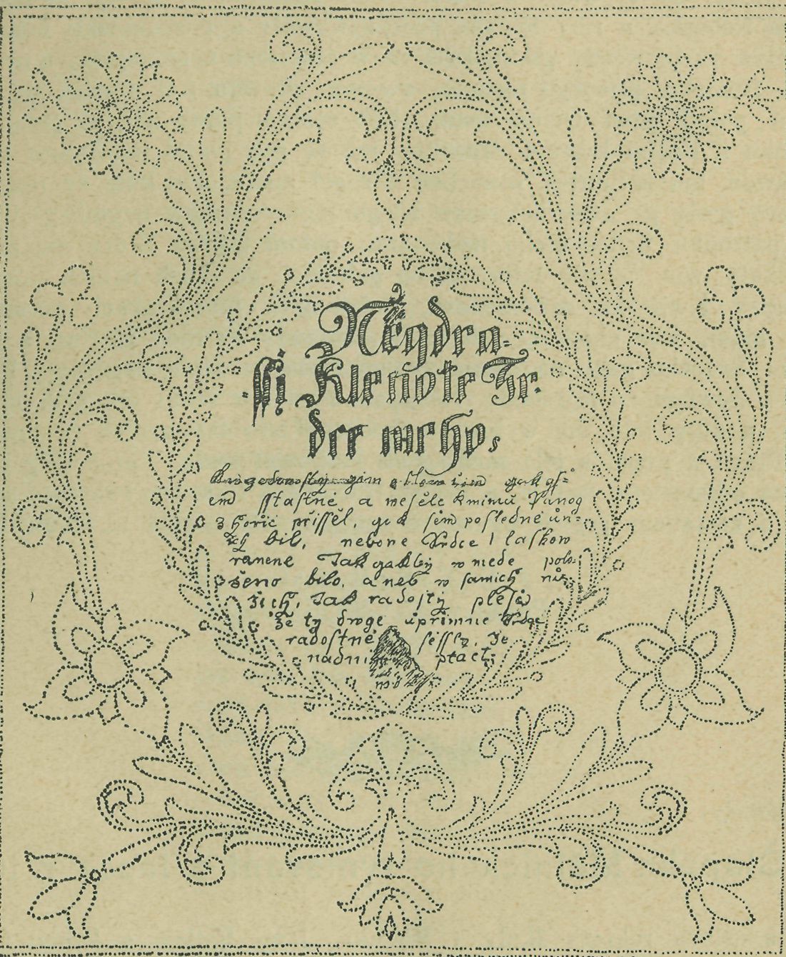 Milostný dopis ozdobný z r. 1807. Kreslil A. Frinta.
