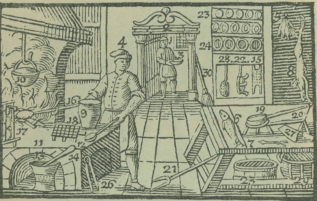 Č. 5. V kuchyni staročeské za věku XVII. Rytina podle návodu Jana Amosa Komenského.