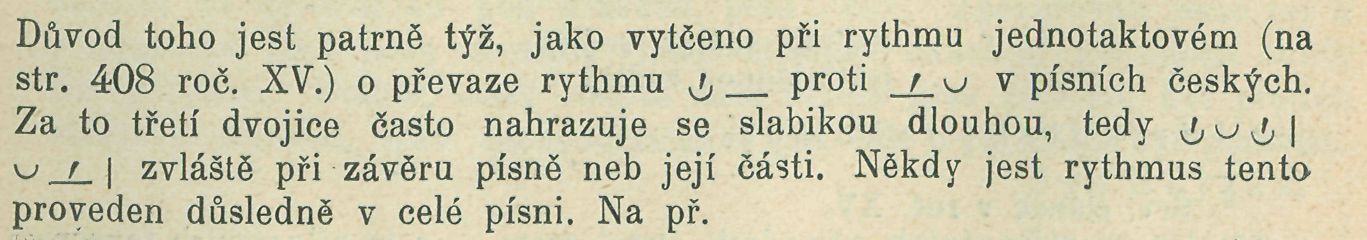 Theoreticky možno nahraditi dvě krátké doby dvojslabičné skupiny jednou dlouhou dobou (i slabikou). V praxi neděje se tak ve skupině prostřední, ježto by tak jedna slabika přecházela z taktu do iaktu. Skupina první nahrazuje se slabikou dlouhou zřídka. V písních >do kolečka« nenašel jsem vůbec toho případu. Pouze v jediné písni sbírky Erbenovy č. 94 notové přílohy se tak děje: