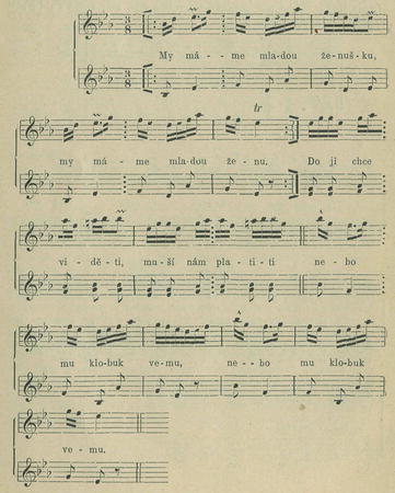 Sem patří také píseň, obsahující »rythmus čepeni«, jak jsme jej nazvali (s jediným textem).