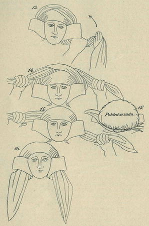 4. Postup, jak si Hanačka zavazuje šátek. Kreslil J. Zbořil.