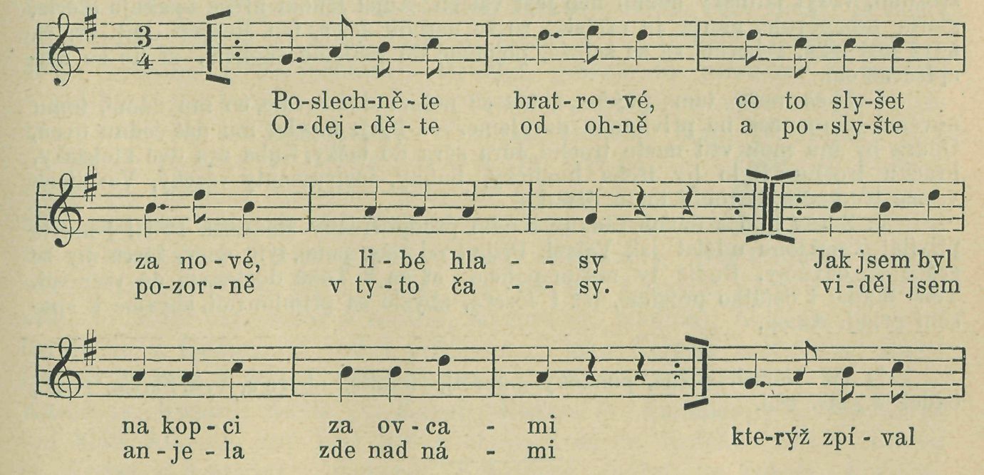 2. Gloria buď chvála od lidí nemalá; narodil se nám spasitel, všeho světa vykupitel to u Betléma. Již lepší trošku, můj milý Bartošku, rozumím tomu máme jít k Betlému. Když tak báča praví, buďme tomu rádi, pospěšme k němu.