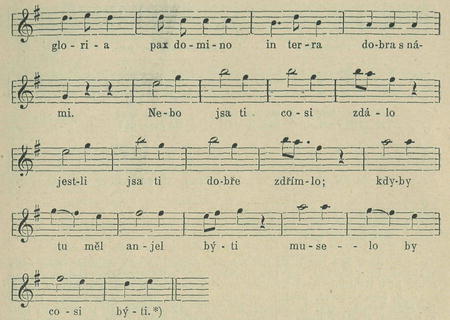 3. Pobčhnu já spěšnější, neb jsem já ochotnější nežli Václav. Zdaliž tomu srozumí, vždyť latinsky neumí neb jest valach. Anjel jenom přece opakuje gloria, gloria prozpěvuje, gloria in exelsis, že se narodil Ježíš, ten Messiás. Milí bratři, když jest taká, seberme sa ze salaša, pojdeme do Betléma skokem, ať ho co nejspíše uzřem.